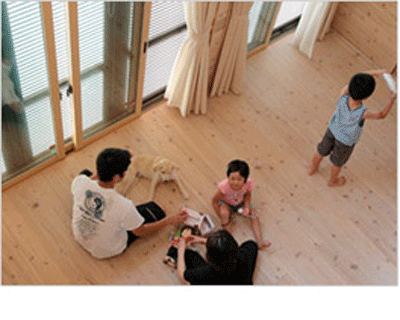 「自然の風はやっぱり気持ち良いですね。クーラーもほとんど使わずにすんでいるし、とても快適です。」とのこと。また、雨の時にルーバーを開けてもほとんど室内に降り込まないので、蒸し暑い夏場の雨を窓を開けてやり過ごせるのも大きなポイントだとか。とても気持ちの良さそうなリビングですね、とお尋ねする と、「やることがないと、みんななんとなくこの部屋に集まってきて…。のんびりとした時間を過ごしています。」というお答えが返ってきました。豊かな光に 満ちた明るい設計のH様のお住まい。エコアマドでさらに快適さが増しているようです。